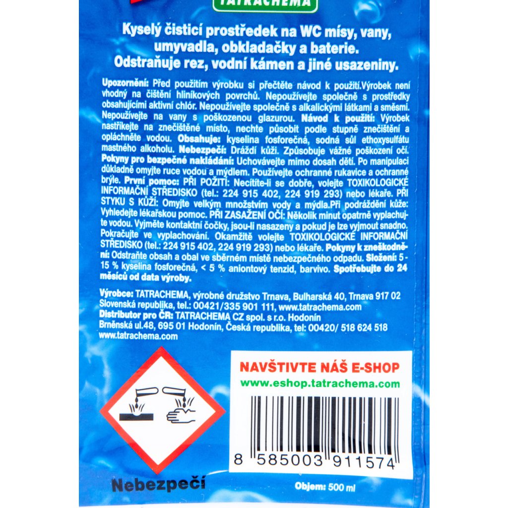 | Důležité upozornění: | Dle zákona č. 258/2000 Sb. je minimální věk kupujícího pro uzavření kupní smlouvy na zboží klasifikované jako žíravé 18 let. Vloží-li kupující do košíku takové zboží, prohlašuje tím, že tuto podmínku věku splňuje. |
