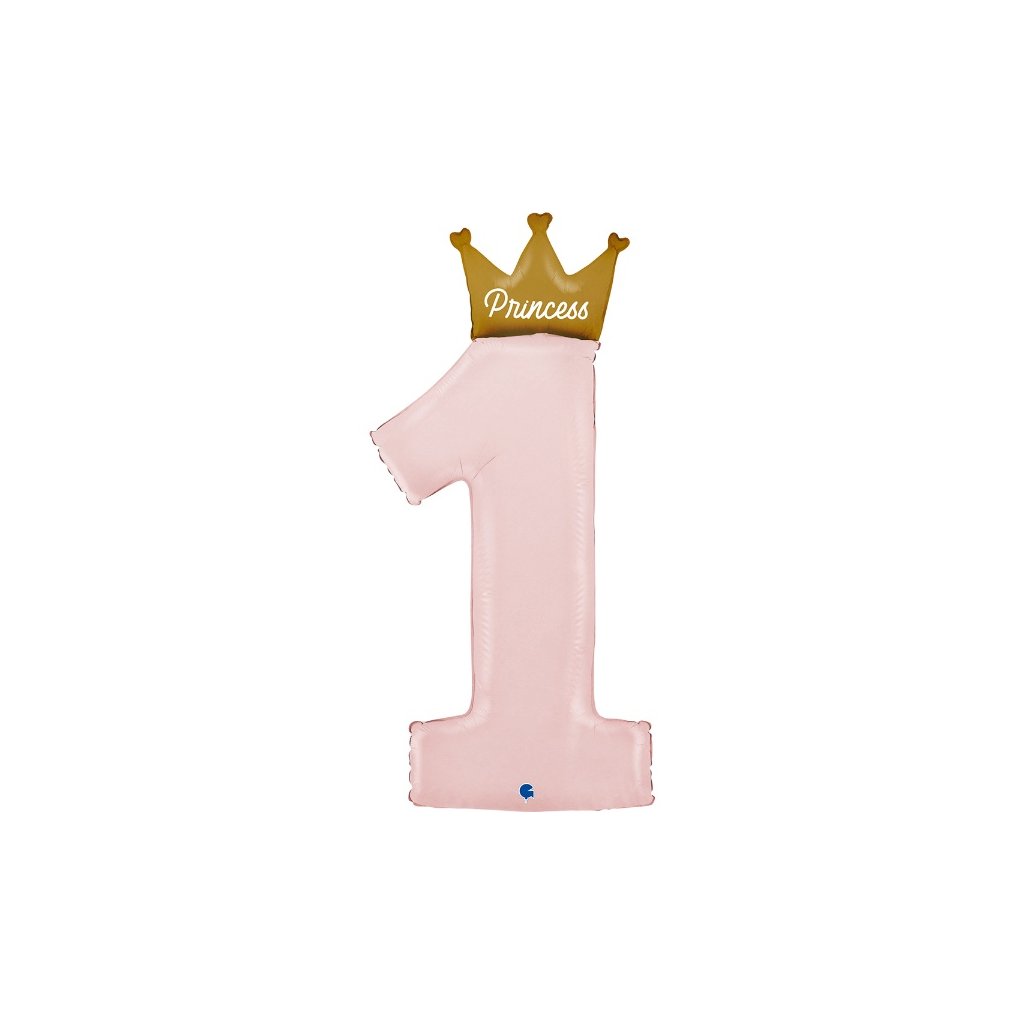 Foliová číslice 1 s korunkou růžová, 102 cm /BP