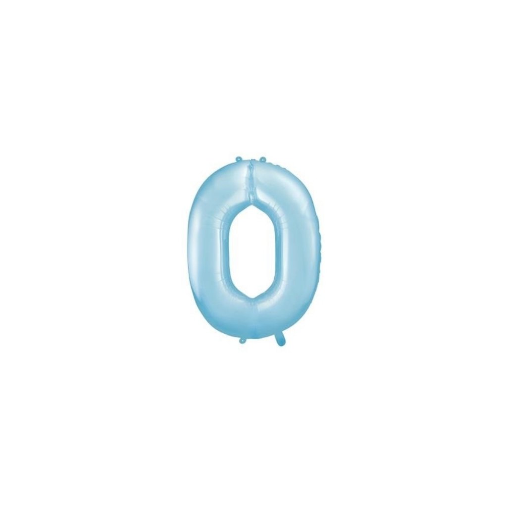 Foliová číslice 0 v modré barvě. Balonek je vhodný na narozeninové oslavy kde může vyobrazovat věk oslavence nebo výročí firmy a další.