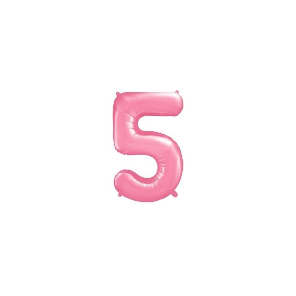 Foliová číslice 5 v růžové barvě. Balonek je vhodný na narozeninové oslavy kde může vyobrazovat věk oslavence nebo výročí firmy a další.