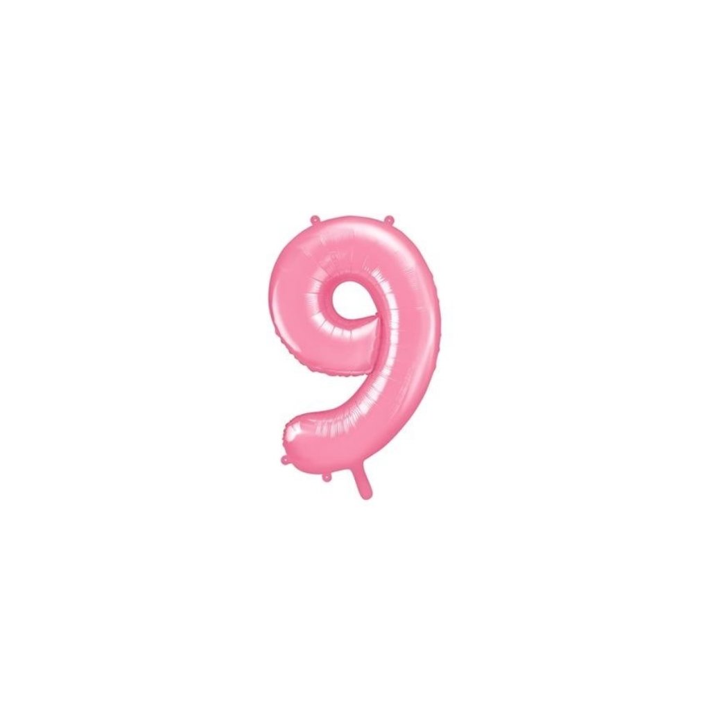 PartyDeco foliový balónek růžový číslo 9 (86 cm) ▹