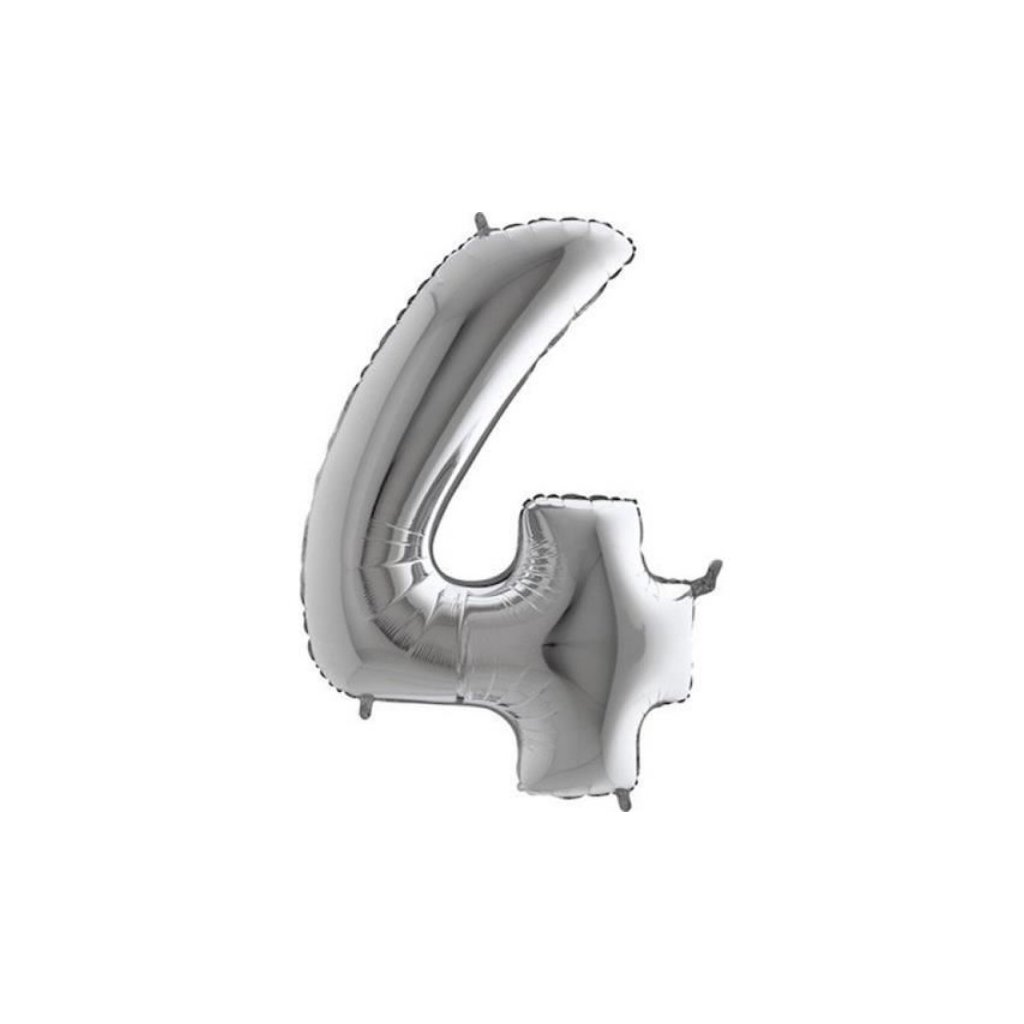 GRABO Balónek číslice "4" stříbrná 102 cm fólie 1 ks