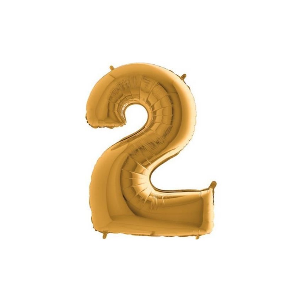 Foliová číslice 2 ve zlaté barvě. Balonek zůstane plně nafouknutý 3 až 5 dní, ale lze jej opakovaně dofukovat přes brčko.