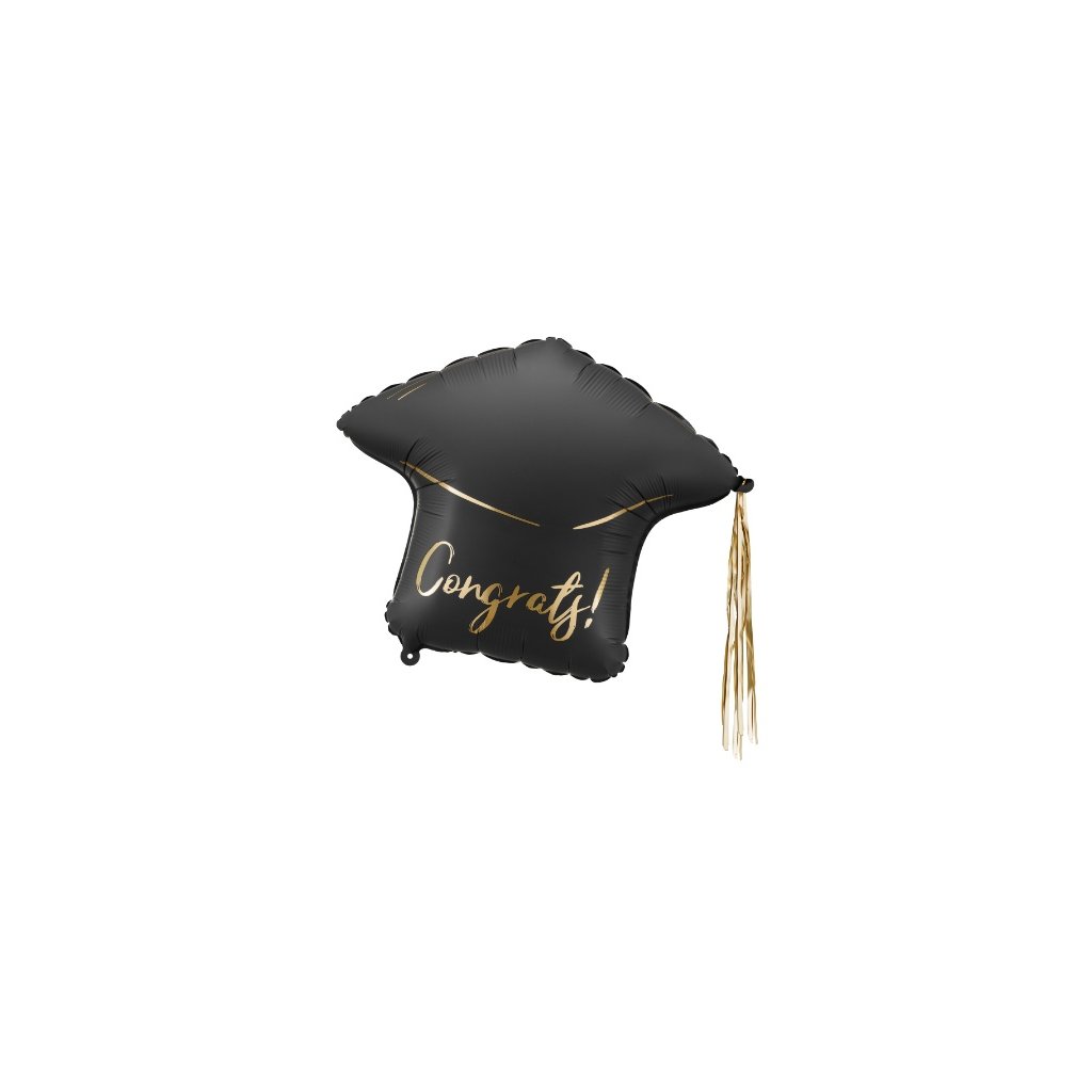 Foliový balonek ve tvaru absolventské čepice s typickými střapci pro dekoraci, nebo jako dárek pro absolventa. Balónek lze plnit vzduchem i héliem a po nafouknutí héliem létá. Velikost balónku je 60 x 55 cm. Balónek je vhodný pro nafukování vzduchem i héliem (brčko je součástí balení). Po nafouknutí héliem zůstane plně nafouknutý cca 5 - 7 dní, poté se začne velice pomalu vyfukovat. Při naplnění vzduchem sice nelétá, ale zato vydrží nafouknutý měsíce. Rozměry po nafouknutí: 53 x 44 cmRozměry před nafouknutím: 60 x 55 cmObjem: cca 20 lMateriál: Metalická fólieBalení: 1 ksBaleno v obchodním obalu: AnoBalónek se samouzávěrem: AnoDoplňkové parametry