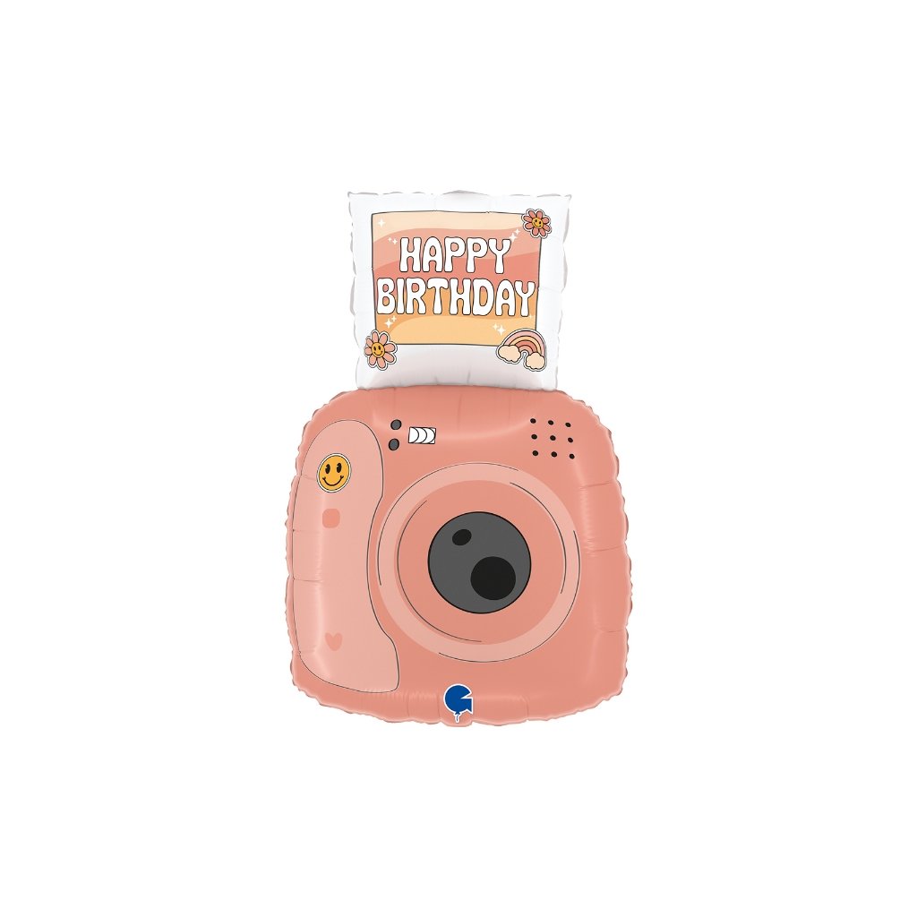 Vneste do narozeninové oslavy pořádnou dávku originality s fóliovým balonkem ve tvaru retro fotoaparátu s nápisem Happy Birthday. Tento balonek v hravém designu s veselými detaily, jako je smajlík a duhové prvky, se hodí pro děti i dospělé. Skvěle vypadá jako součást narozeninové výzdoby, v balónkovém buketu nebo jako fotorekvizita do narozeninového fotokoutku. Balonek je vybaven samo uzávěrem, takže jej můžete snadno nafouknout vzduchem i héliem. Po nafouknutí héliem se krásně vznáší a vydrží několik dní plně nafouknutý. Je vyroben z kvalitní fólie, která mu dodává odolnost i zářivé barvy. Rozměry po nafouknutí: 37 × 58 cmRozměry před nafouknutím: 61 cm (24")Objem balonku: cca 29 lMateriál: metalická fólieSamo uzávěr: AnoObchodní balení: AnoBalení: 1 ksDoplňkové parametry