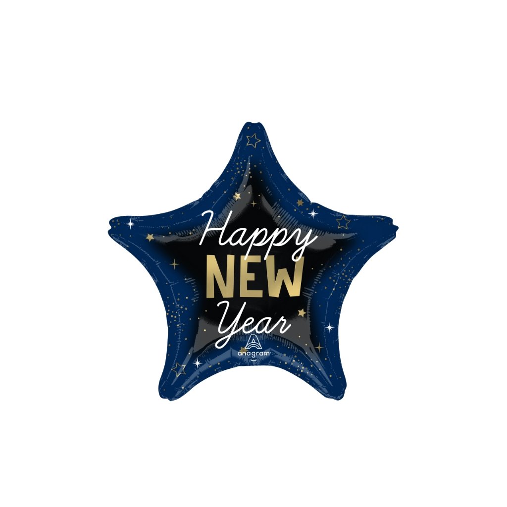 Oslavte příchod nového roku stylově s fóliovým balonkem ve tvaru hvězdy s nápisem Happy New Year. Elegantní kombinace černé, tmavě modré a zlatých hvězd dodá vaší silvestrovské výzdobě luxusní vzhled. Tento balonek se hodí jako samostatná dekorace, doplněk k balónkovému buketu nebo k ozdobení místa pro půlnoční přípitek. Balonek má samo uzávěr, což zaručuje snadné nafukování vzduchem i héliem. Při plnění héliem se krásně vznáší a vydrží několik dní nafouknutý. Vyroben je z kvalitní fólie, která mu dodává pevnost a lesklý vzhled. Rozměry po nafouknutí: cca 38 cmRozměry před nafouknutím: 43 cmObjem balonku: 16 lMateriál: metalická fólieSamo uzávěr: AnoObchodní balení: AnoBalení: 1 ksDoplňkové parametry