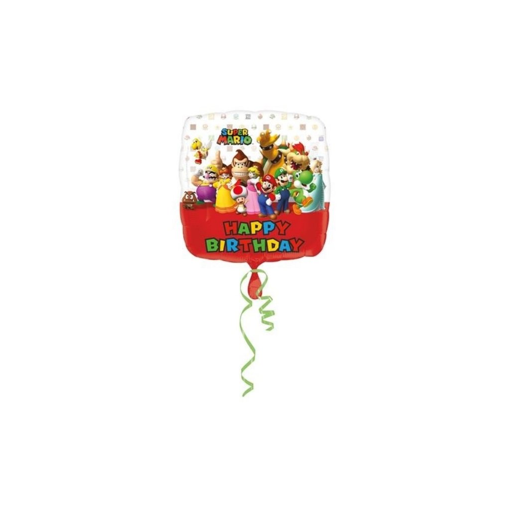 Foliový balonek s motivem Super Mario a celou jeho bandou a nápisem Happy Birthday, který je vhodný jako dárek nebo výzdoba na narozeninovou party. Vhodný pro nafukování vzduchem i heliem. Balonek nafouknutý heliem vydrží létat až 3 až 5 dní a dá se opakovaně dofukovat. Při nafukování balónku vzduchem použijte brčko nebo dutou slámku. Rozměr: 43 cm. Balení: 1 ks.Doplňkové parametry