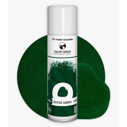 Sametová barva ve spreji ke zdobení vychlazených povrchů, např. máslových krémů, fondánových hmot, marcipánu, zákusků, čokolády a dalších. Složení: hnací plyn: E943a, E944, E943b, kakaový tuk, barviva E170, E120, E133, emulgátor E322 sójový lecitin, antioxidant E392Doplňkové parametry