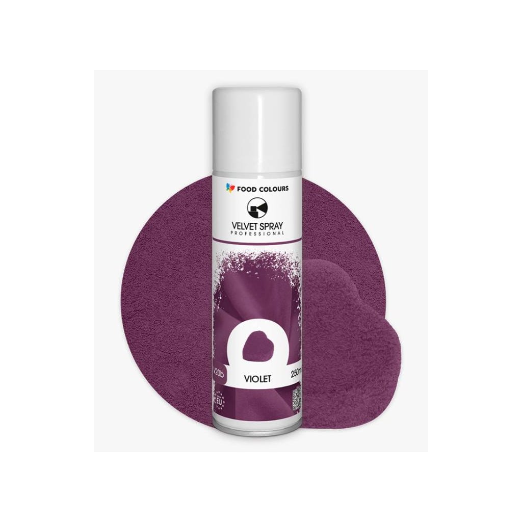 Sametová barva ve spreji ke zdobení vychlazených povrchů, např. máslových krémů, fondánových hmot, marcipánu, zákusků, čokolády a dalších.Složení, co obsahuje produkt - Food Colours sametový sprej Violet 250 ml pro cukrářské účely: