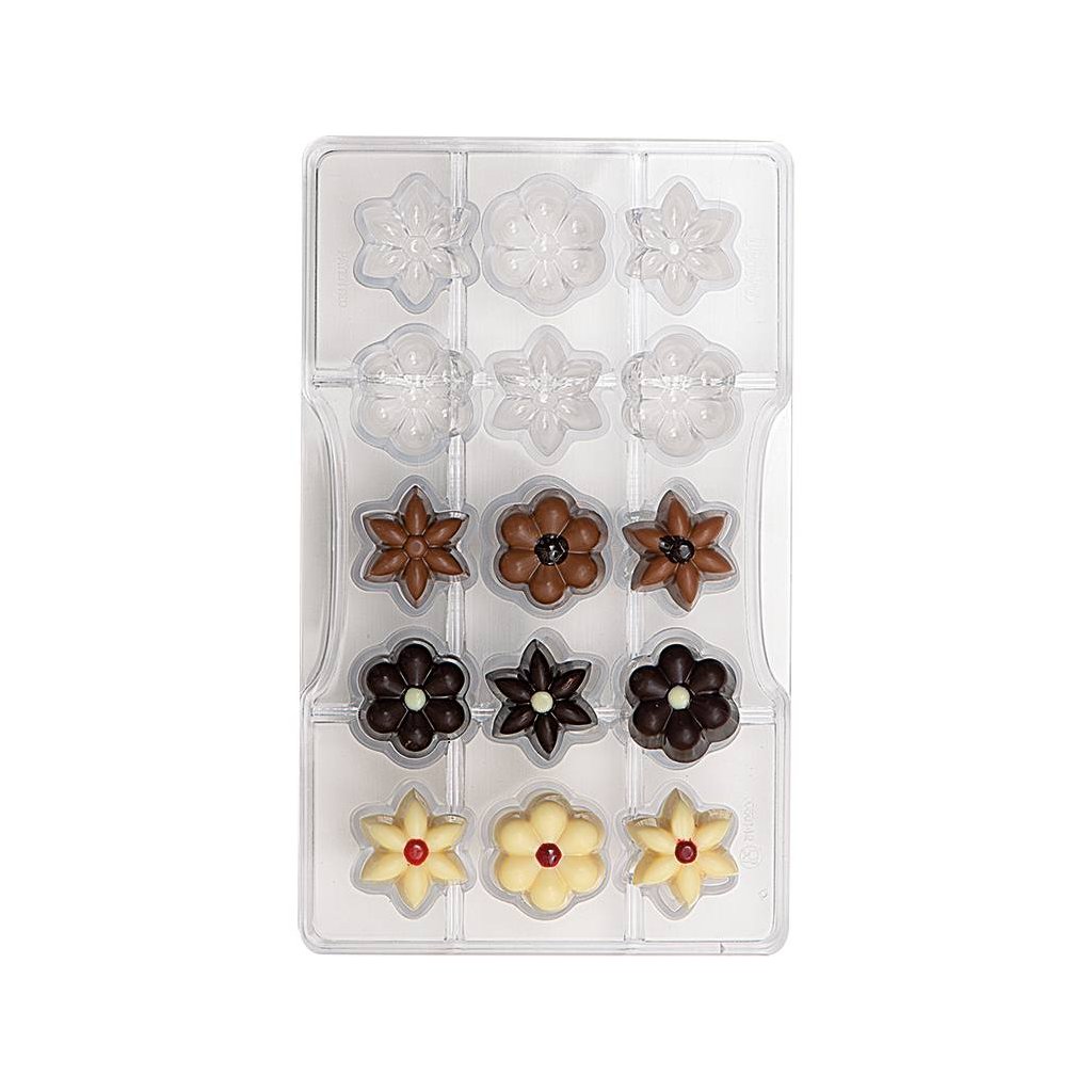 Polykarbonátová forma na čokoládu. Vytvoříte v ní 3D květiny.| Kategorie: | Formy na pečení |