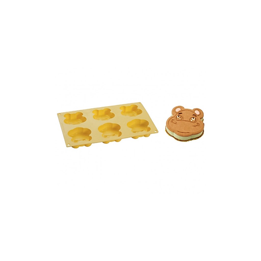 Silikonová forma ve tvaru hrocha. Možno použít k upečení sušenky i k vytvoření zmrzliny.
