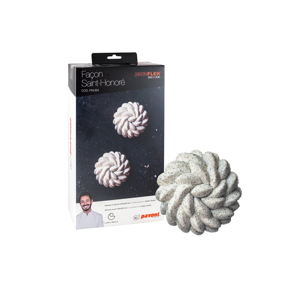 Silikonová forma PAVOFLEX ve tvaru Saint Honore, vhodná na pečení, i na zamražování. Vynikající na zákusky a výrobu semifred. Používá se i ve studené kuchyni např.: na masové aspiky.