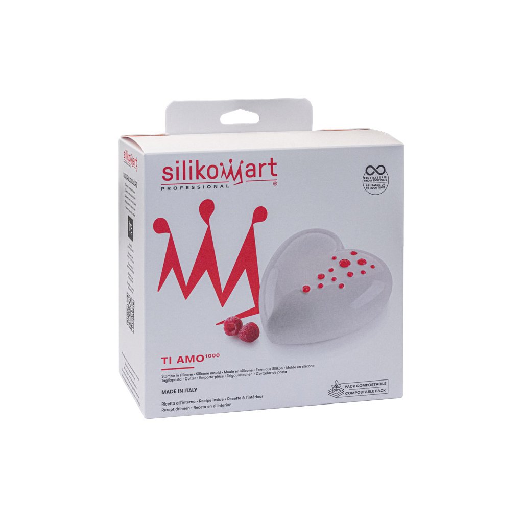 Profesionální silikonová forma navržená pro ty nejromantičtější příležitosti. TIAMO je silikonová forma od firmy Silikomart Professional pro vytváření cukrářských výrobků ve tvaru srdce o objemu 1 litr. Součástí balení je oboustranné plastové vykrajovátko pro tvorbu originálních dortových vložek (insertů) či základen, které budou dokonale kombinovatelné s tvarem TIAMO. Forma TIAMO je charakteristická nadprůměrnou flexibilitou a všestranností, která zaručuje perfektní výsledky jak při výrobě semifred, tak při pečení. Formu lze použít v troubě, šokeru, mikrovlnné troubě, v rozmezí teplot od -60°C do +230°C. Lze ji mýt ručně nebo v myčce na nádobí. Před použitím výrobek opláchněte ve vodě.