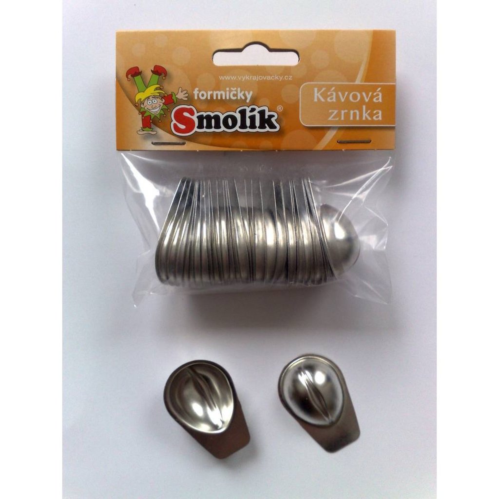 Sada dvaceti kusů formiček z pocínovaného plechu ve tvaru kávových zrn, efektní a přitom velmi jednoduchý vzor. Formičky lze použít nejen pro pečení, snadno jejich pomocí vytvoříme i ozdobná kávová zrnka například z marcipánu nebo fondánu.Doplňkové parametry