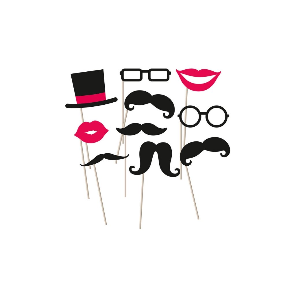 Foto booth kit s kníry a dalšími motivy je ideální volbou, pokud chcete na své oslavě vytvořit jedinečný fotokoutek. Set obsahuje 10 kusů rekvizit – různé druhy knírů, brýle, rty i klobouk. Díky nim se hosté mohou během focení proměnit v legrační postavičky a vaše fotografie získají originální šmrnc. Rekvizity jsou vyrobeny z pevného papíru a upevněny na dřevěné tyčce, takže se snadno drží v ruce. Skvěle se hodí na narozeninové oslavy, svatby, rozlučky se svobodou, firemní večírky i tématické party. Technické parametry:Rozměry: 27 x 15,4 cmMateriál: papír, dřevoBarva: mix (černá, růžová)Balení: 10 ksDoplňkové parametry