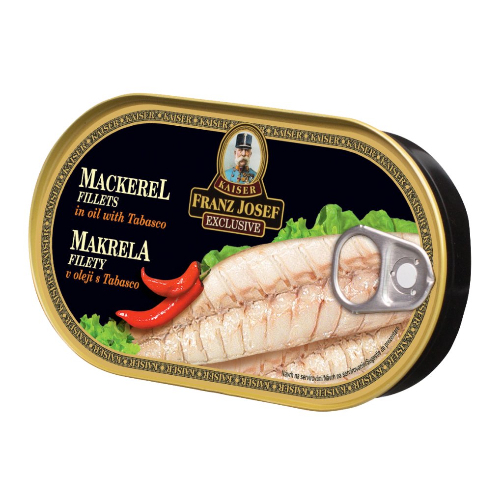 - Makrela filety v oleji s Tabasco. Pálivý výrobek. Rybí konzerva. Sterilováno.