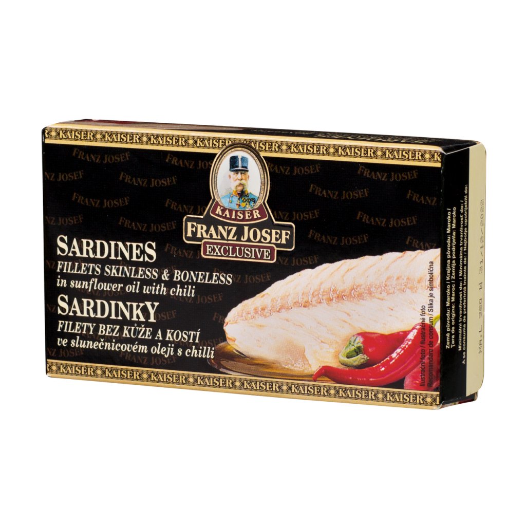 FRANZ JOSEF KAISER Sardinky filety v rostliném oleji + Chilli 90 g