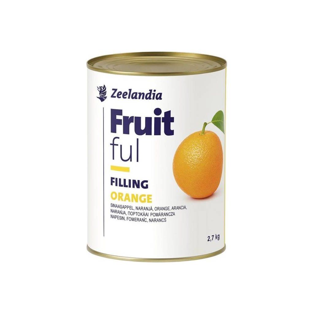 Ovocná náplň Zeelandia Fruitful Pomeranč (2,7 kg) s vysokým obsahem 70 % šťavnatých pomerančů. Ideální do cukrářských výrobků, koláčů, croissantů či dortových náplní.| Kategorie: | Krémy a náplně hotové |