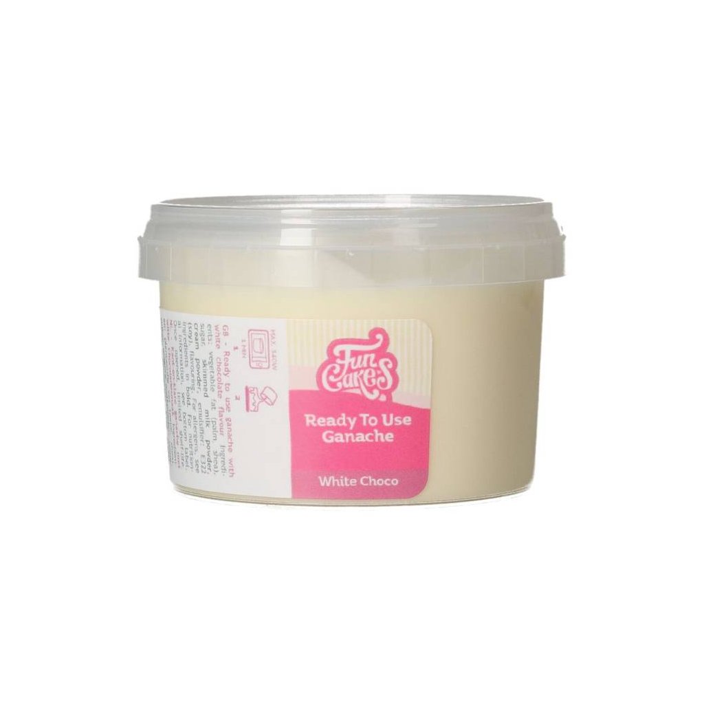 Cukrářské potřeby a suroviny pro sladké pečení.Produkt pro domácí cukráře: Ganáž připravena k okamžitému použití 260g bílá čokoláda - FunCakes ,