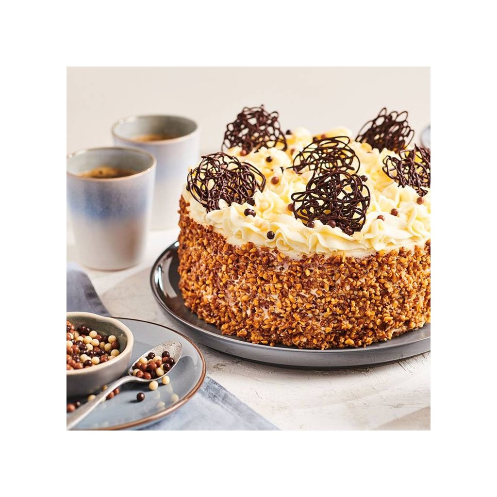 Složení: cukr, lískové ořechy (30%) Nutriční hodnoty ve 100 g: energie 1916 kJ/455 kcal, tuky 14,4 g (z toho nasycené 1,1 g), sacharidy 80,4 g (z toho cukry 77,4 g), bílkoviny 4 g, sůl 0,5 gDoplňkové parametry