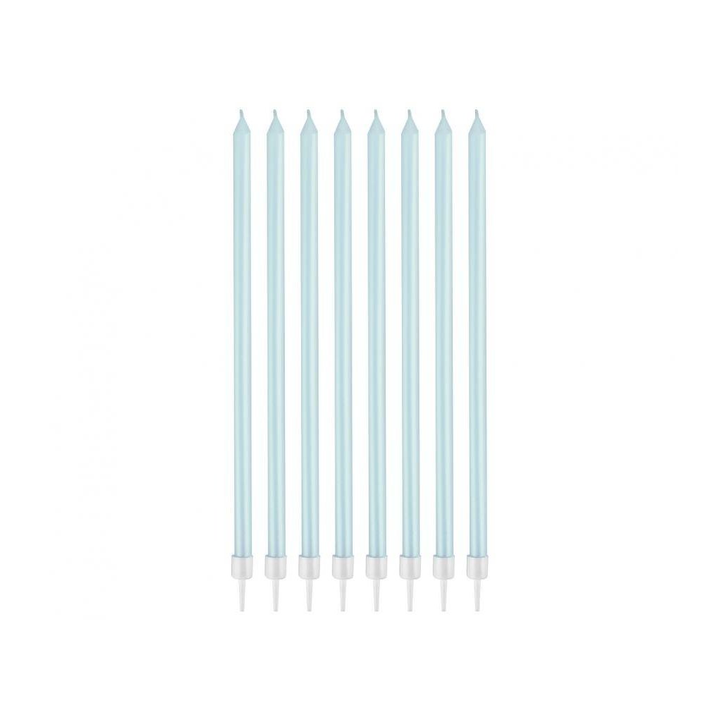 Godan svíčky dlouhé světle modré perleťové (8 ks) ▹
