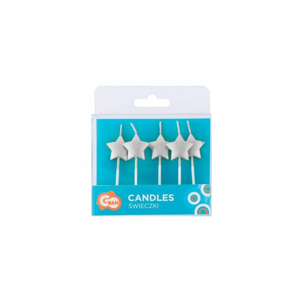 Dortové svíčky Stars - metalické stříbrné 6,5 cm - 5 ks /BP