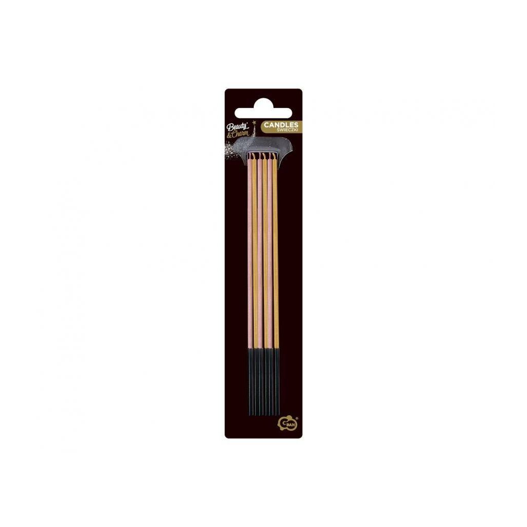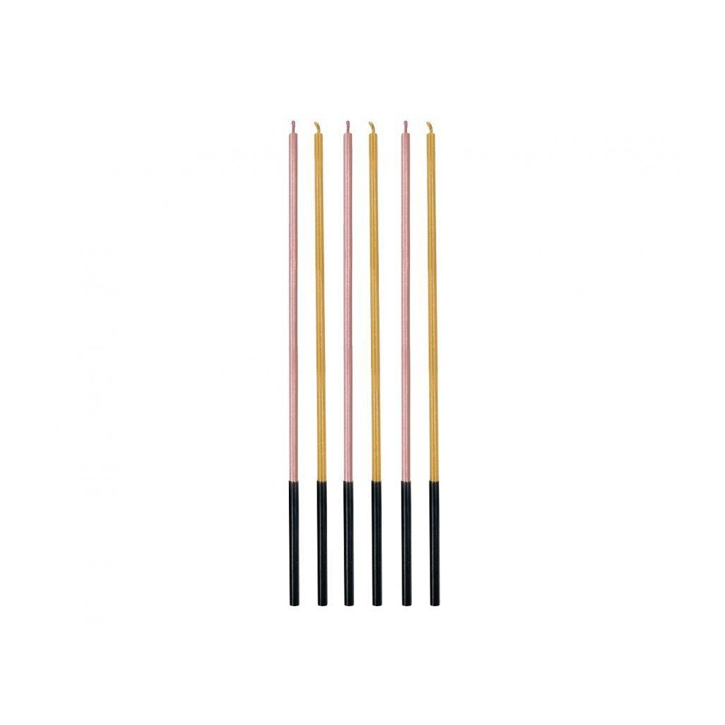 Godan svíčky tenké růžové a zlaté (6 ks) ♡
