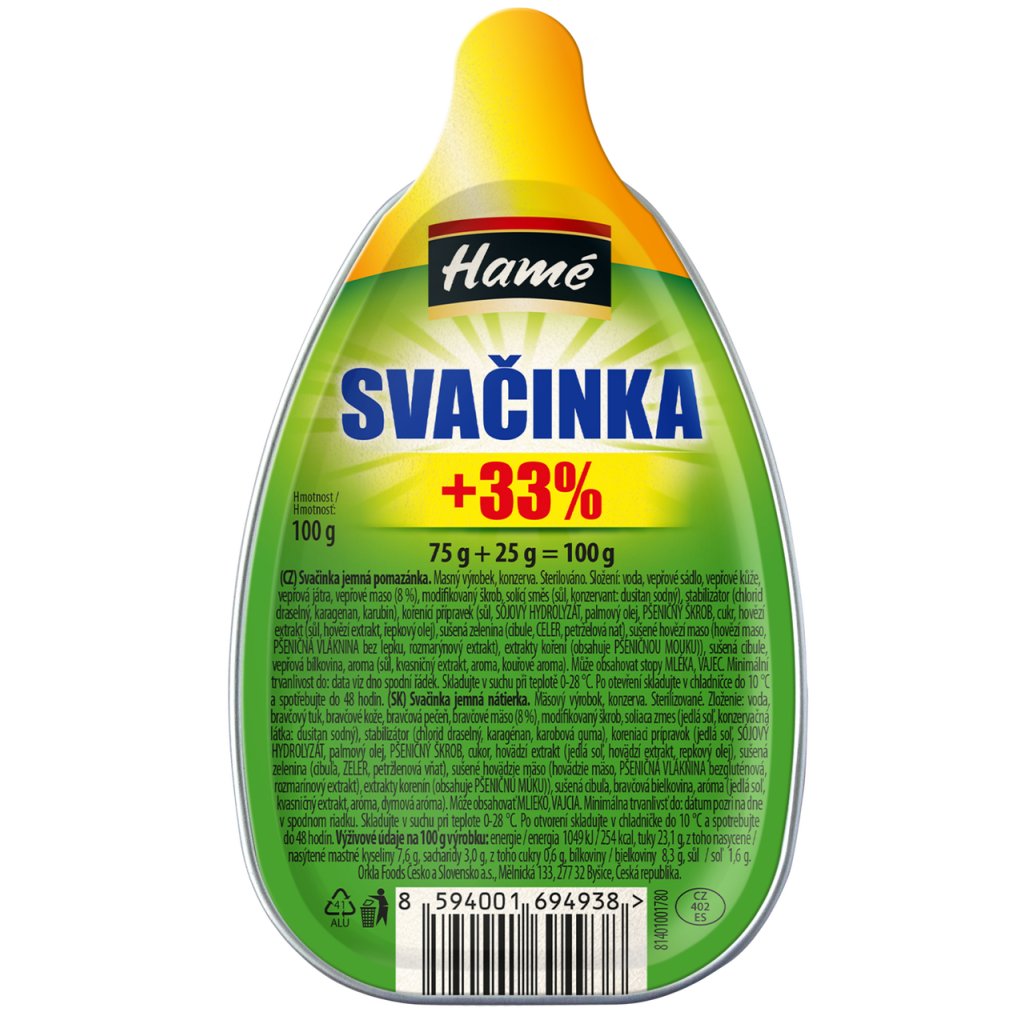 NUTRIČNÍ HODNOTY produktu - Hamé Svačinka KARTON 16 x 100 g / 100g výrobku