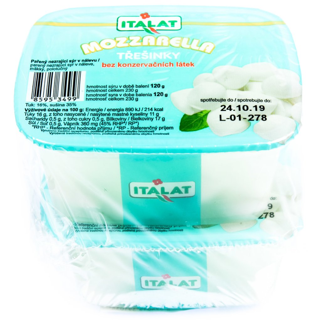 - Mozzarella TŘEŠINKY ITALAT - jsou vyrobeny tradiční technologií, z čerstvého mléka a pouze s živými mléčnými kulturami, bez konzervačních látek.