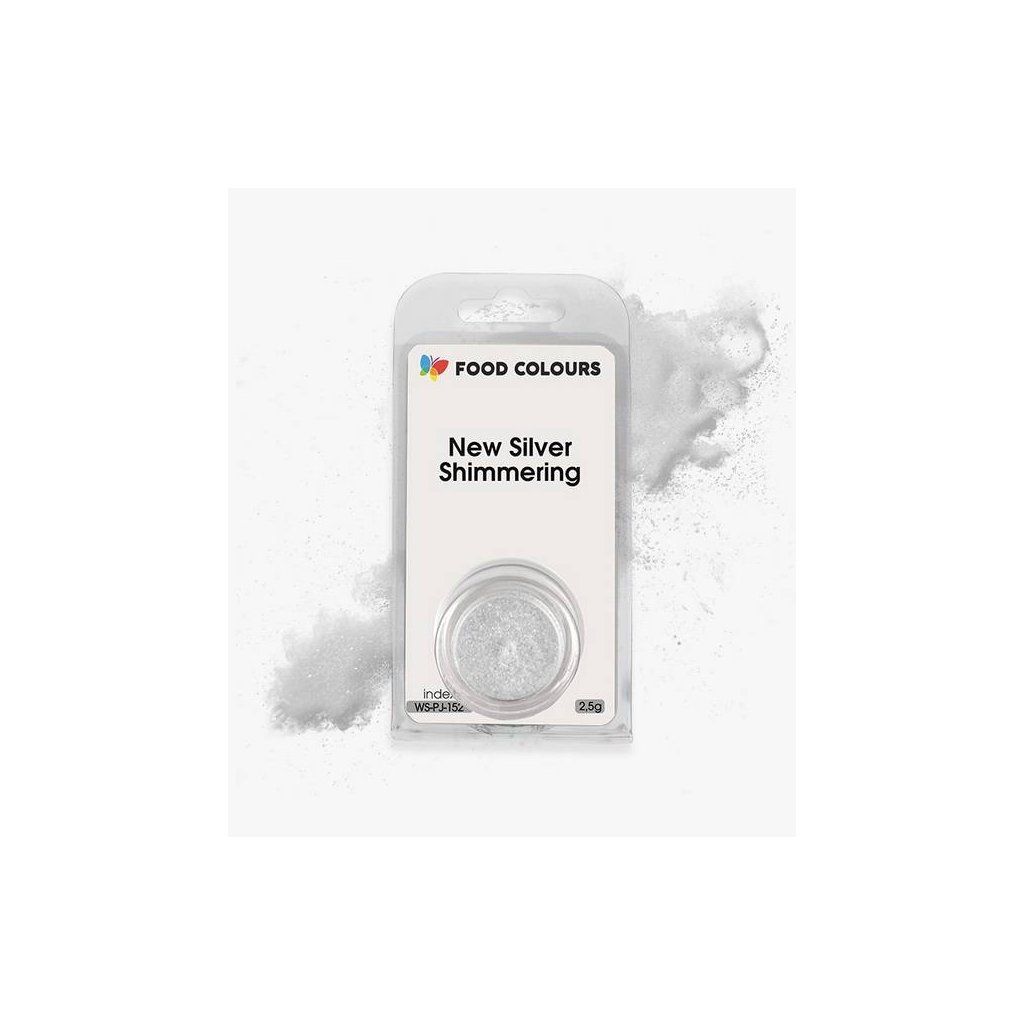 Jedlá prachová perleťová barva Food Colours New Silver Shimmering (2,5 g) Stříbrná ▹