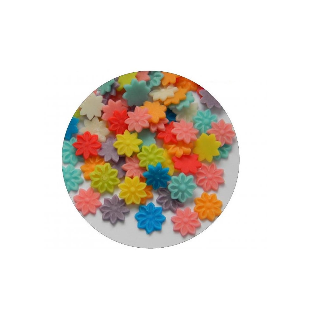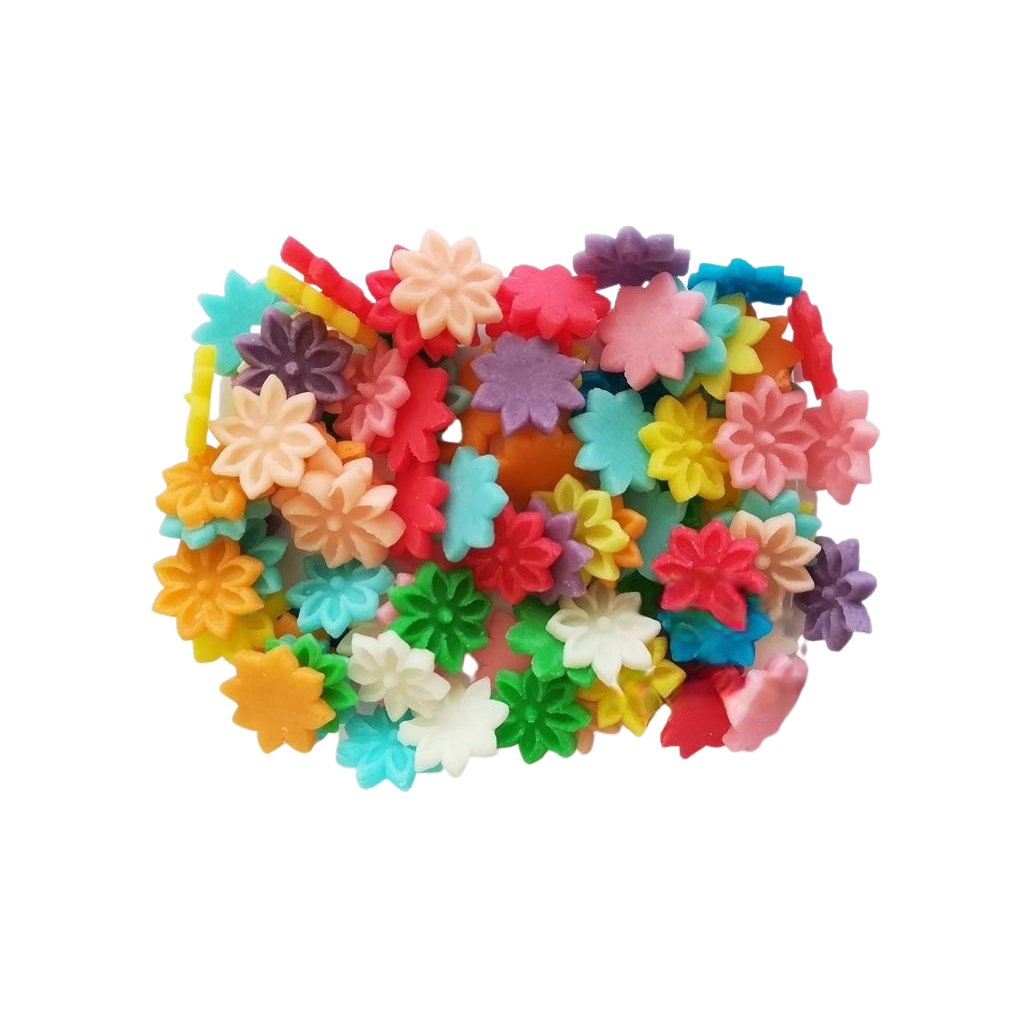 Směs vytlačovaných pestrobarevných kytiček z decor hmoty.