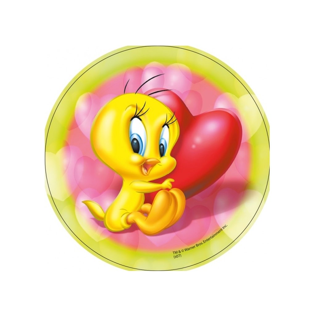 Jedlý papír - obrázek na dort - kruh: TWEETY KUŘÁTKO - SRDÍČKO