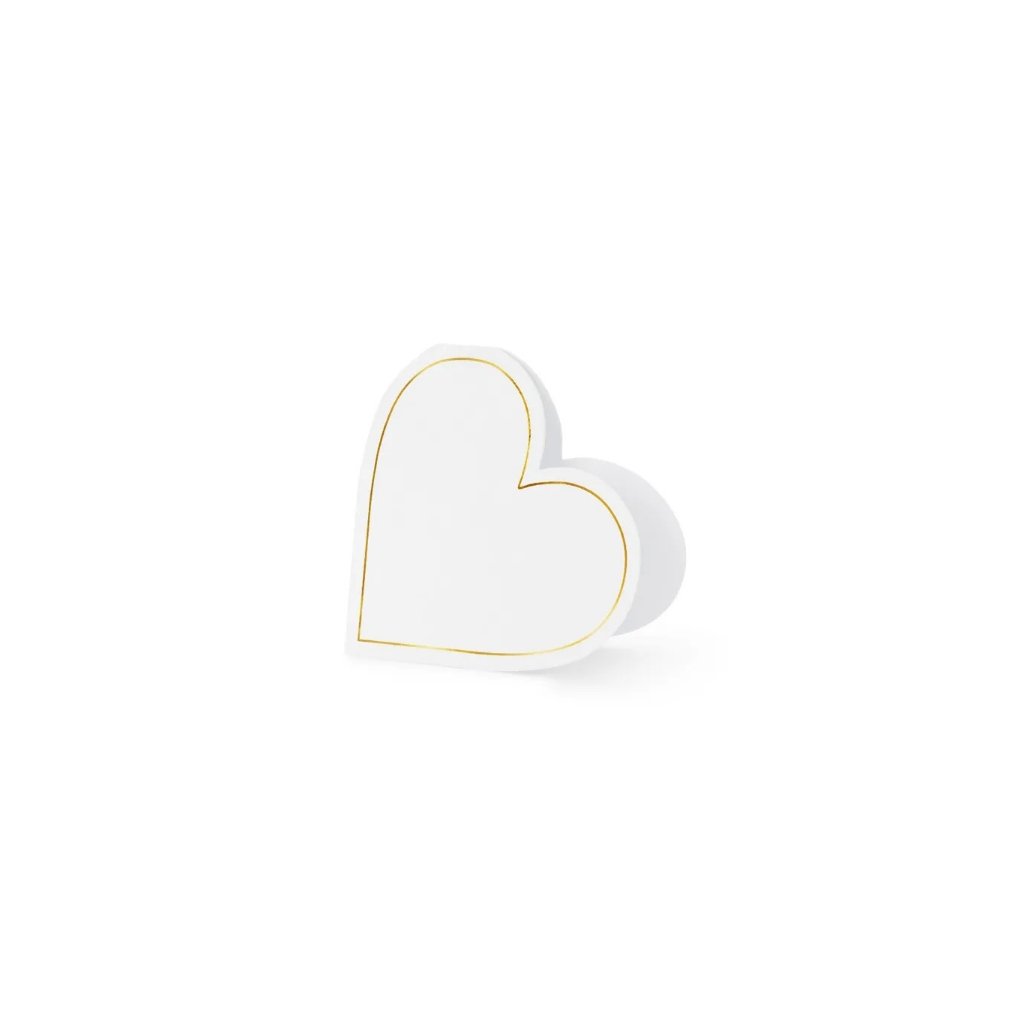 Jmenovky ke svatebnímu stolu - Srdce se zlatým okrajem - 15.7 x 22 cm. Zasedací kartičky na svatbu velmi zjednoduší organizaci. Buďte originální a připište na zadní stranu vtipnou poznámku o ženichovi nebo nevěstě. Balení: 10 ks.Doplňkové parametry