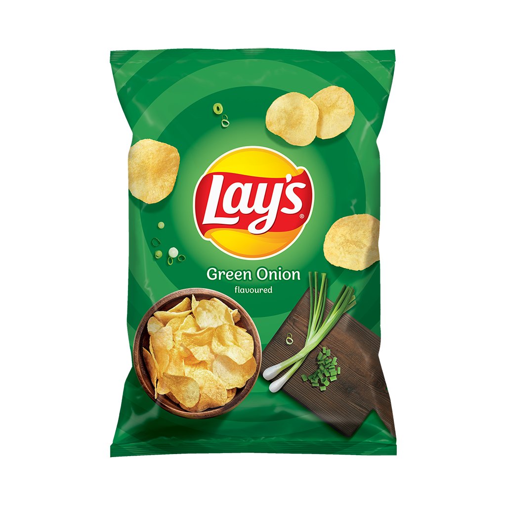 - Smažené bramborové lupínky s příchutí jarní cibulky.