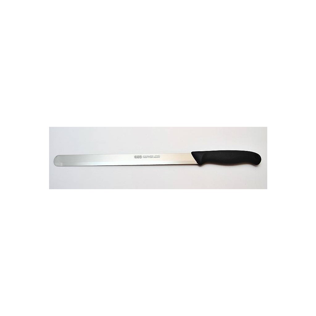 Dortový nůž hladký.Nůž je vyroben z vysoce kvalitní nerezové oceli, rukojet z pevného plastu, který je hygienicky nezávadný a nárazuvzdorný. Je vhodný pro mytí v automatických myčkách.Délka čepele: 22,5 cmCelková délka: 34 cm| Kategorie: | Cukrářské nože a palety |