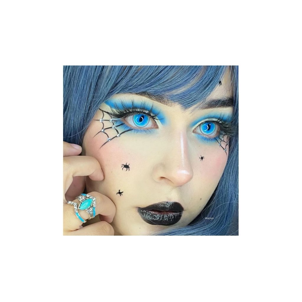 Dodejte svému vzhledu jedinečný a výrazný efekt s kontaktními čočkami Blue Cat Eyes. Tyrkysová barva doplněná růžovým srdcem a černým obrysem okamžitě upoutá pozornost a propůjčí vašim očím kočičí, až mystický pohled. Tyto 3měsíční nedioptrické čočky jsou ideální pro cosplay, karnevaly, Halloween či tematické focení, kde potřebujete ohromit každým pohledem. Jsou vyrobené z měkkého hydrogelu, který zajišťuje pohodlné nošení a zároveň dostatečnou propustnost kyslíku. Čočky jsou bezpečné a při správné péči vydrží až 3 měsíce. Upozornění: Před prvním použitím vždy ponořte čočky alespoň na 4 hodiny do čerstvého roztoku na kontaktní čočky. Dodržujte hygienické pokyny a návod k použití. Technické parametry:Materiál: měkký hydrogelBarva: tyrkysová s růžovým srdcem a černým obrysemPrůměr: Ø 14,5 mmZakřivení: 8,6 mmDoba nošení: 3 měsícePropustnost kyslíku: anoDioptrie: bez dioptrií (nedioptrické)Balení: 2 kusyObchodní balení: anoDoplňkové parametry