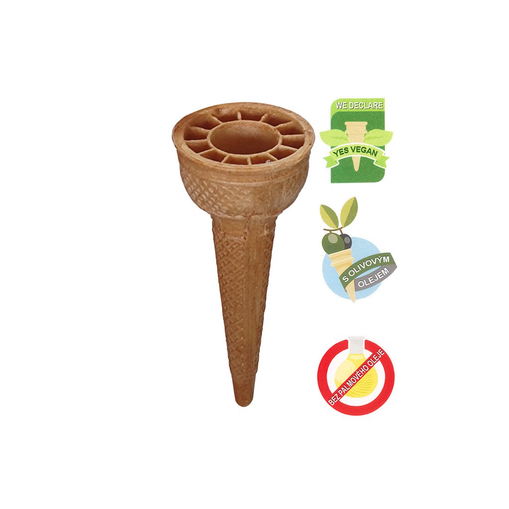 Originální kornouty od proslulého, tradičního římského výrobce Cono Roma. Jsou vyrobené podle tradičních rodinných receptů bez použití ztužených a palmových tuků. Kornout je vhodný pro vegany a odpovídá požadavkům dle normy ISO9001. Výrobce by chtěl tímto produktem nahradit ty běžne dostupné na trhu, ale bez laktózy a konzervantů, s použitím pouze zdravých surovin.