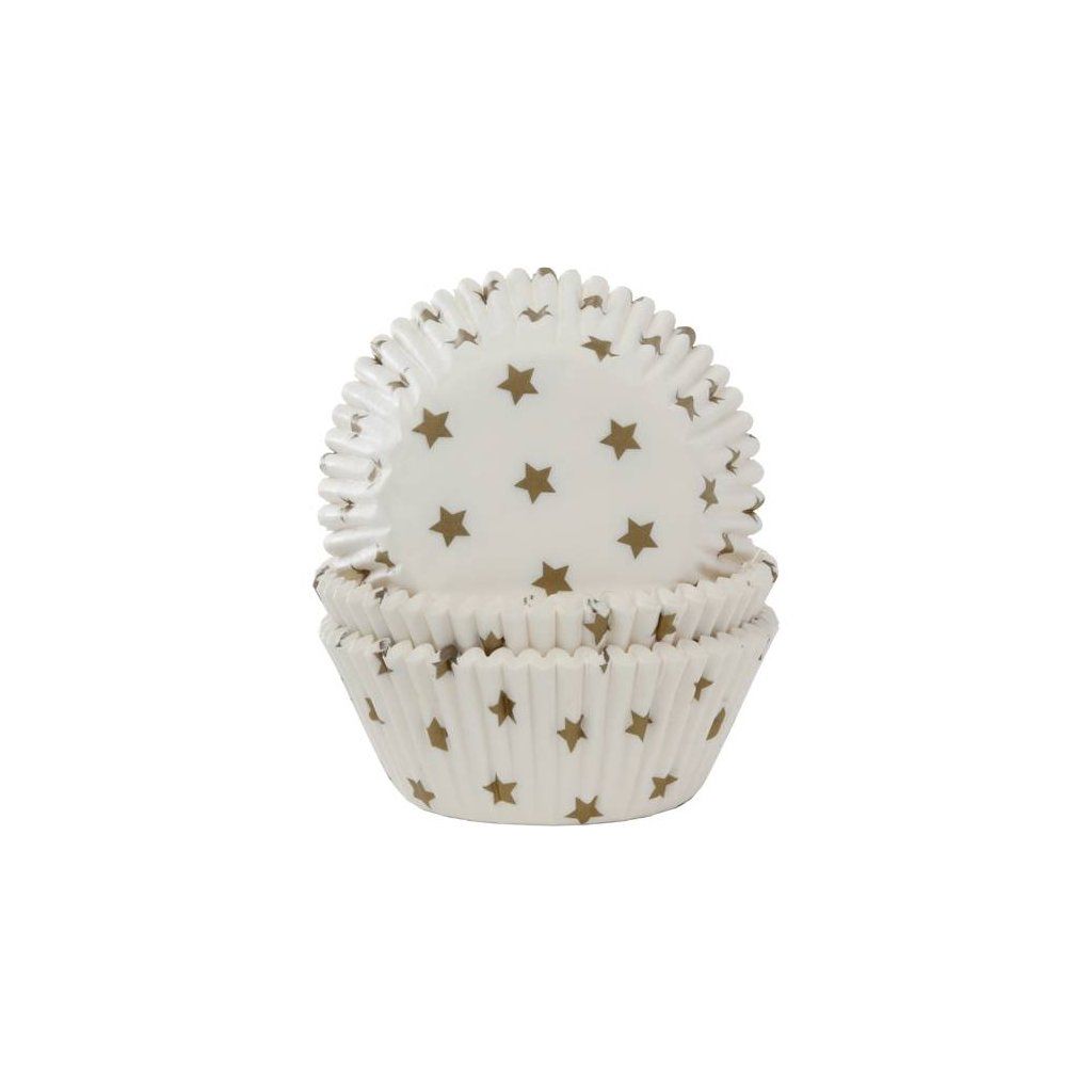 Cukrářské potřeby a suroviny pro sladké pečení.Produkt pro domácí cukráře: Košíčky na muffiny zlaté hvězdy 50x33 mm - House of Marie ,