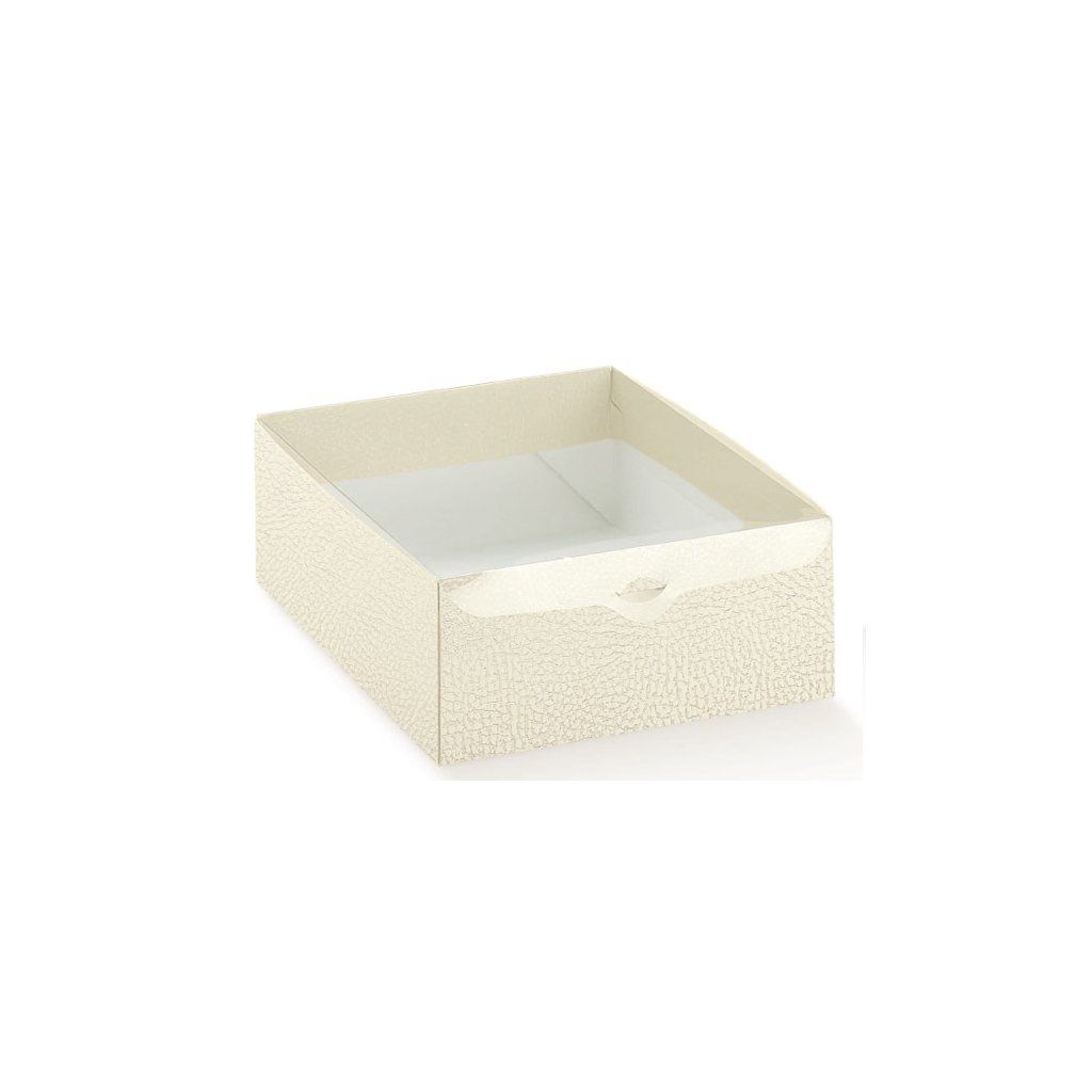 Krabice s průhledným víkem 200x150 v.80mm (kůže bílá) 10 ks/bal