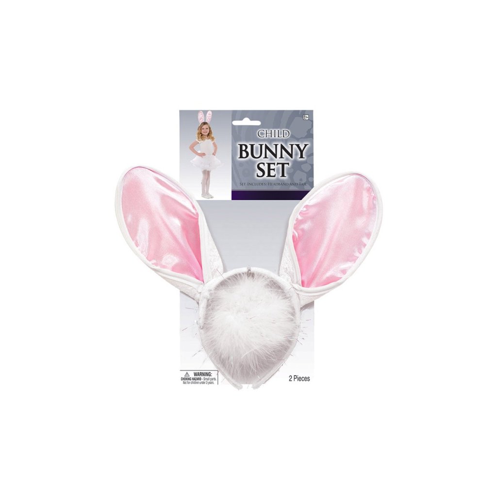 Králičí uši a ocásek - bílo-růžové - set 2 ks /BP