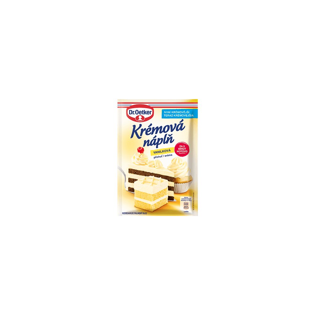 Příprava krémových náplní Dr. Oetker je velmi jednoduchá, rychlá a zaručí Vám perfektní konzistenci a chuť. Váš dort se stane ještě lahodnějším. Krémové náplně Dr.Oetker jsou pevné při krájení. Jedno balení vystačí na dort upečený v dortové formě o průměru 26 cm.Balení obsahuje: 65 g směsi pro přípravu náplně K tomu přídáte: 200 ml studeného mléka, 2-3 lžíce moučkového cukru (asi 30 g), popř. 125 g změklého másla Příprava: Do vyšší nádoby nalijeme 200 ml studeného mléka, a přidáme 2-3 lžíce moučkového cukru. Do oslazeného mléka vsypeme směs pro přípravu náplně. Vše šleháme při nejvyšších otáčkách 4 minuty do hustého krému. Pokud chceme tradiční máslovou náplň, přidáme ještě 125 g změklého másla a ještě 1/2 minuty šleháme.