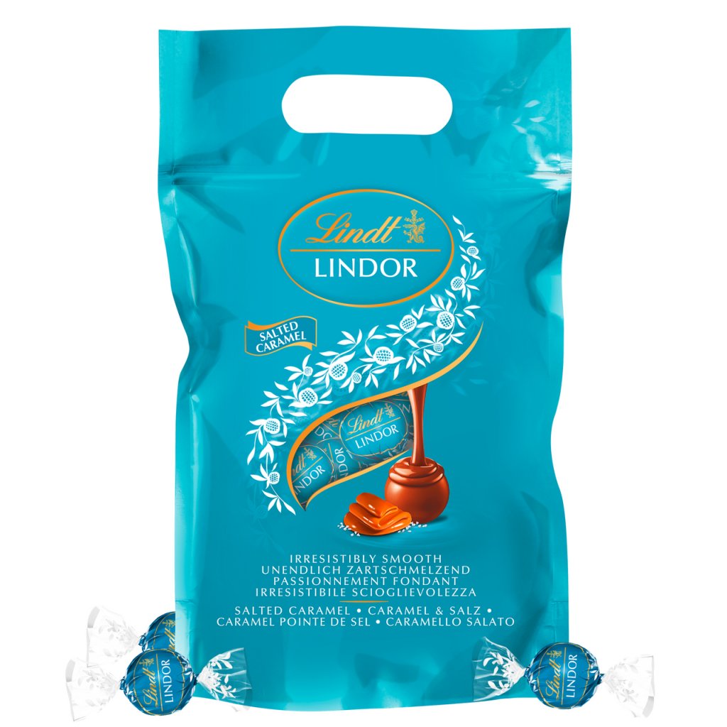 - Pralinky Lindor z mléčné čokolády Lindt s jemnou karamelovou náplní a krystalky soli.
