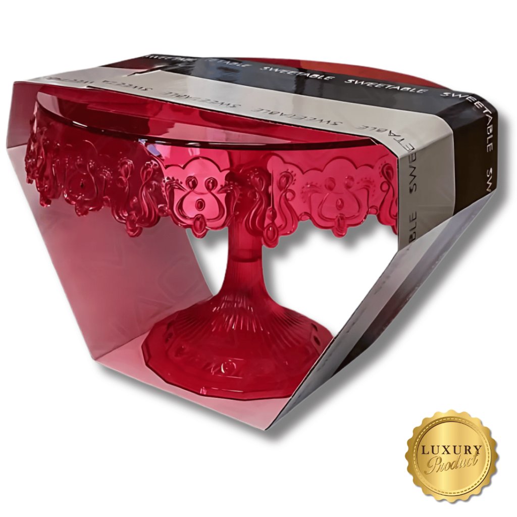 Plastový designový stojan na dorty s dekoračním lemem pro prezentaci moderních zákusků: cupcakes, makronek, marshmallow atd.