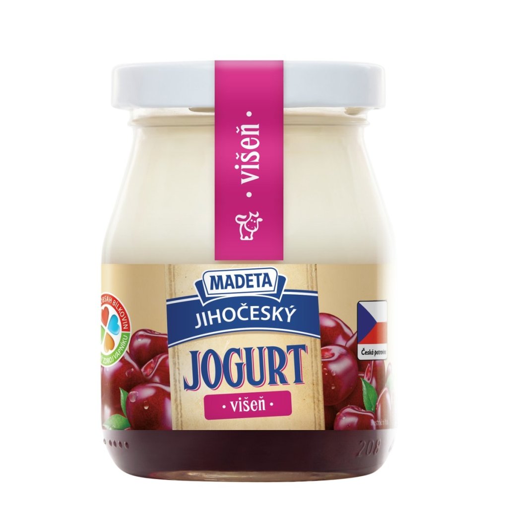 MADETA Jihočeský jogurt višeň 2,5 % tuku chlaz. 200 g ve skle