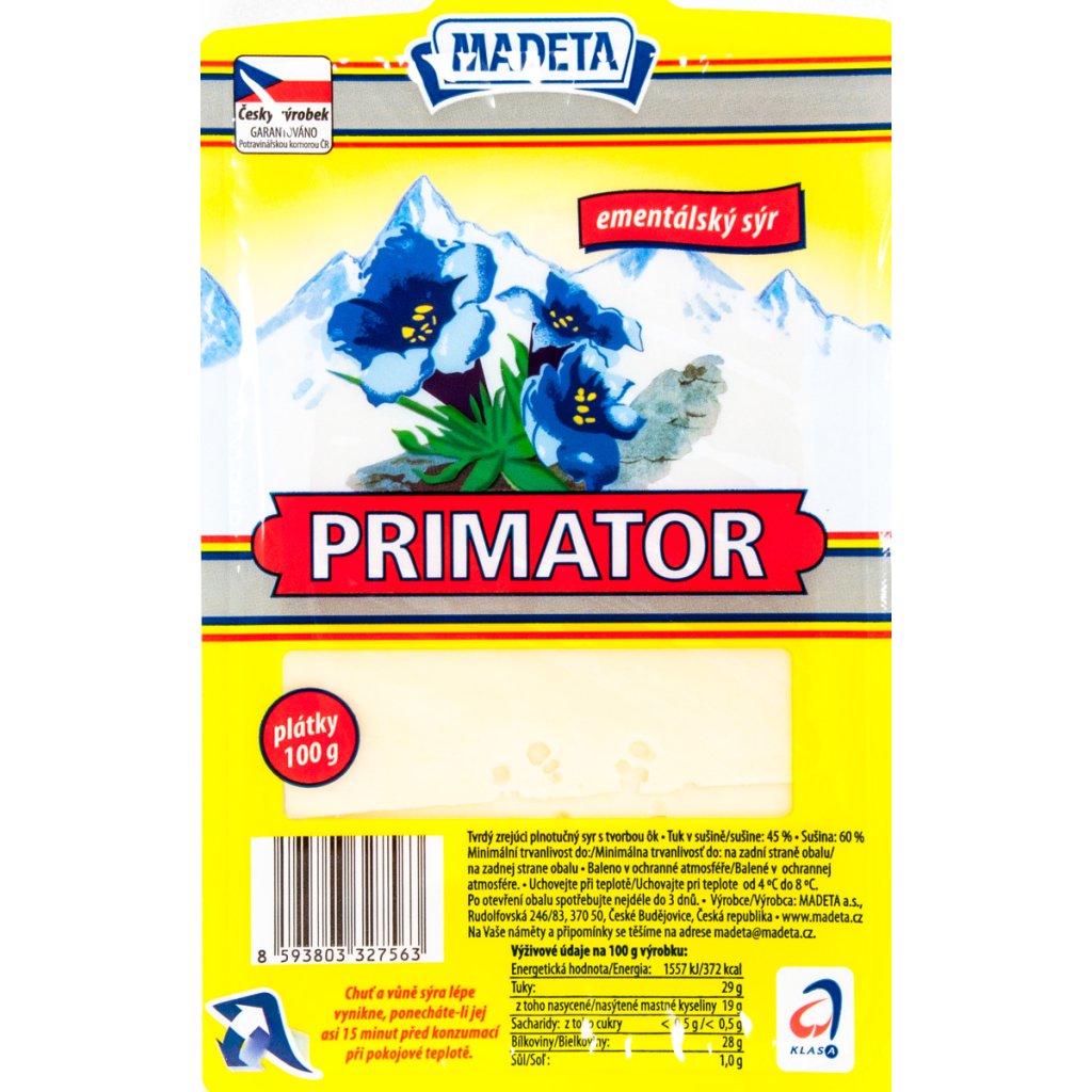 NUTRIČNÍ HODNOTY produktu - MADETA Primátor 45% sýr plátky chlaz. 100 g / 100g výrobku