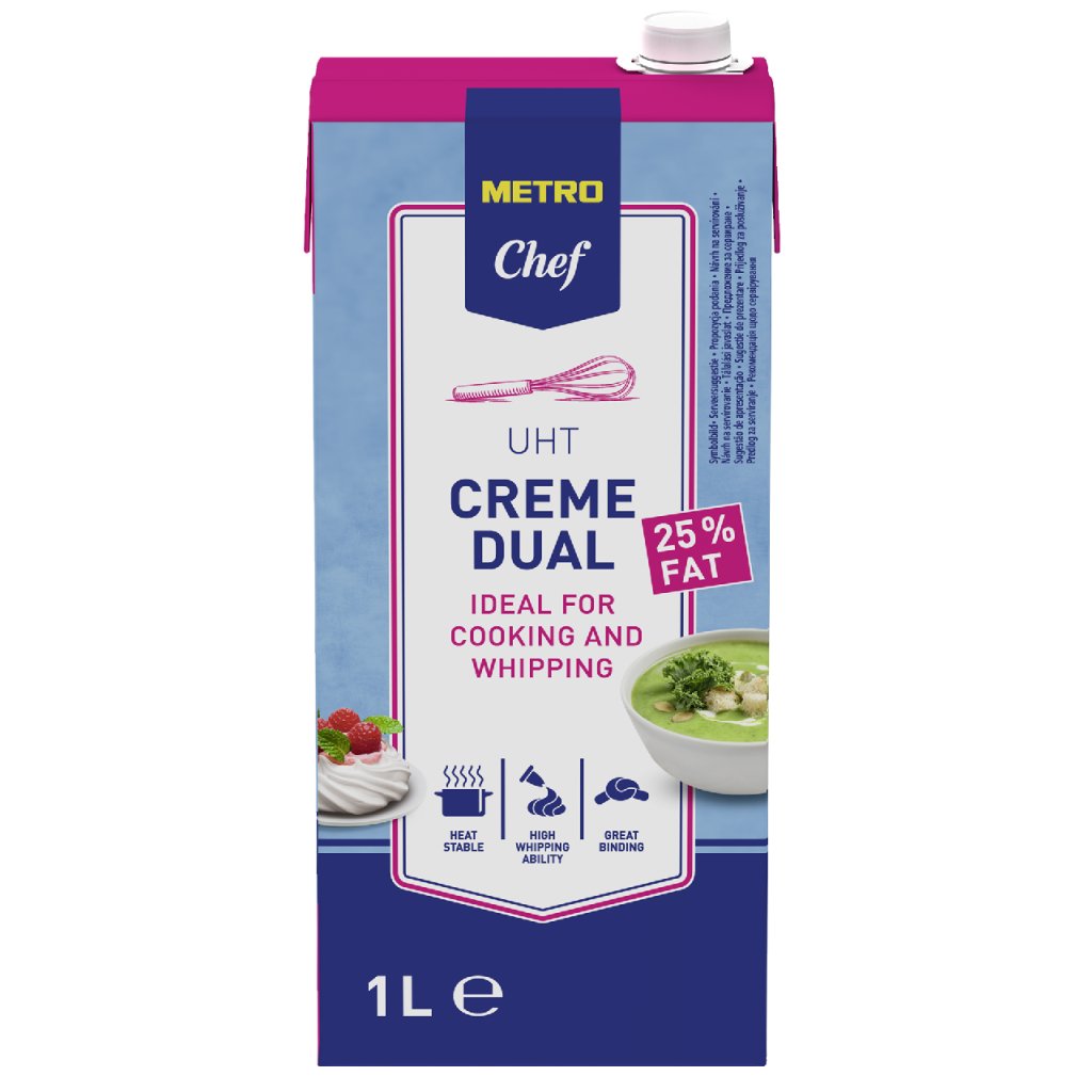 Nakupovat potraviny, drogerii a další potřeby pro domácnost online se vyplatí. Náš online supermarket Terunka.cz, toho má v kategorii: mnohem více. Prohlédněte si celou naší nabídku a ušetřete svůj čas i peníze.METRO Chef Dual Creme 25 % chlaz. 1 l UHT za skvělou cenu, máme skladem.