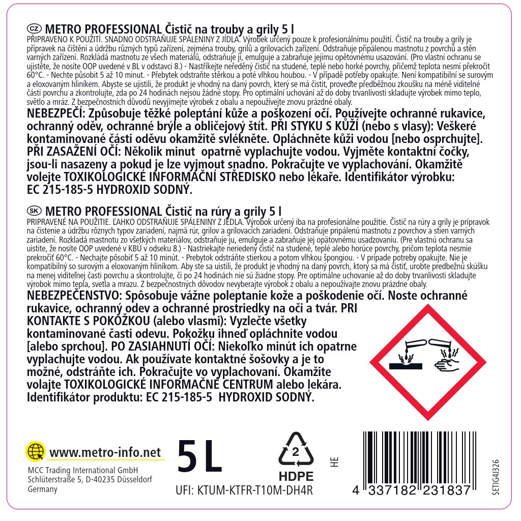 Důležité upozornění: | Dle zákona č. 258/2000 Sb. je minimální věk kupujícího pro uzavření kupní smlouvy na zboží klasifikované jako žíravé 18 let. Vloží-li kupující do košíku takové zboží, prohlašuje tím, že tuto podmínku věku splňuje. |