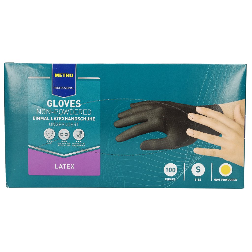 METRO PROFESSIONAL Rukavice nepudrované Latex černé vel. S 100 ks