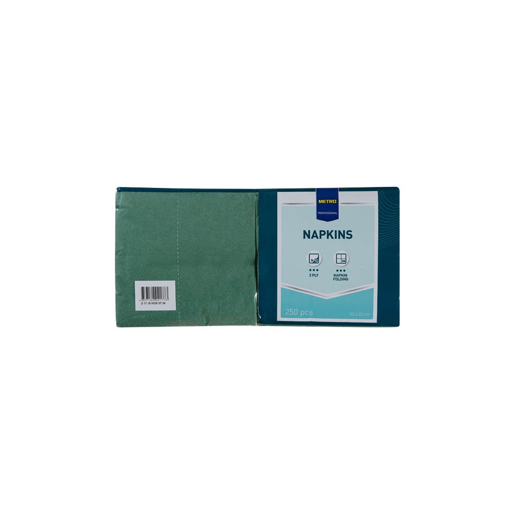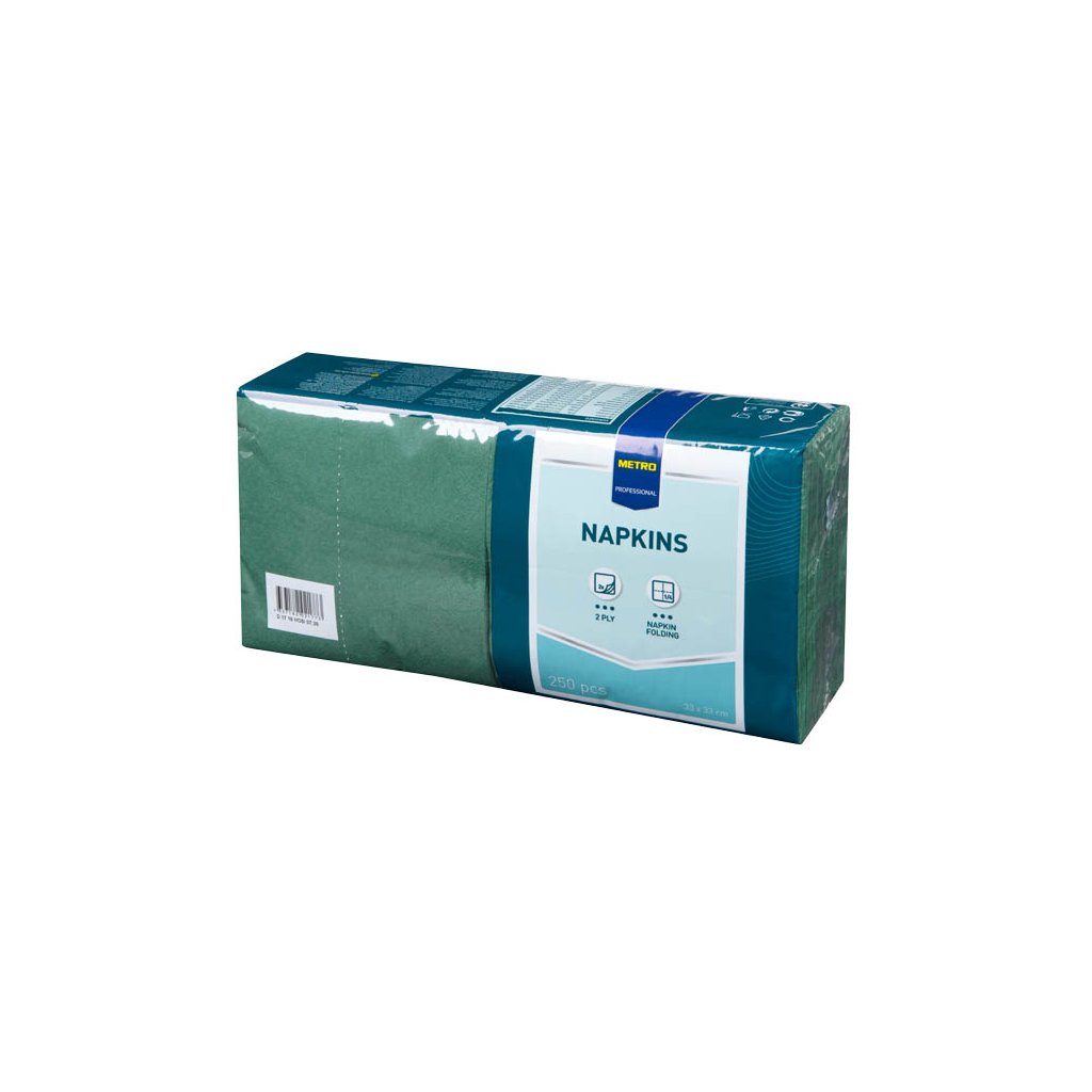 METRO PROFESSIONAL Ubrousky 2vrstvé 33 x 33 cm zelené 250 ks