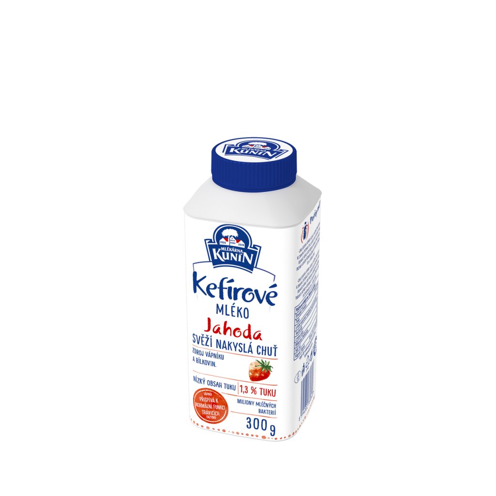 - kefírové mléko jahodové, kysaný mléčný výrobek ochucený.